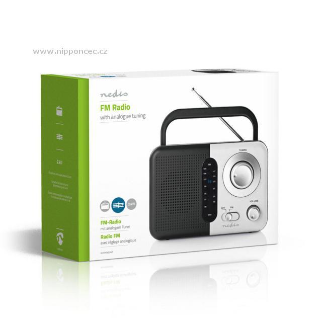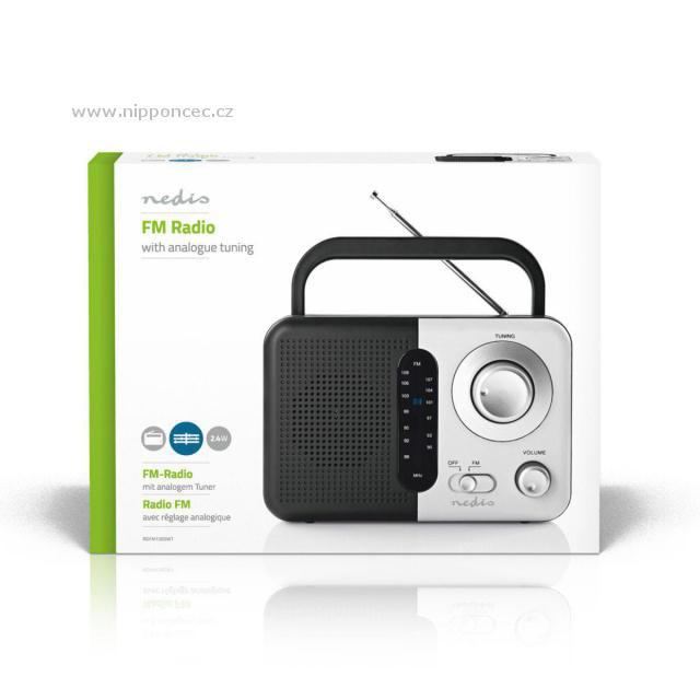 Přenosné FM rádio Nedis RDFM1300WT je ideální pro poslech hudby na cestách nebo na zahradě. Ovládání je snadné, napájení je možné jak na baterie, tak ze sítě. Díky maximálnímu výkonu 2,4 W dokáže toto malé rádio zajistit silný zvuk. Zároveň umožňuje připojení sluchátek, aby jste nerušili své okolí.Přenosné FM rádio Nedis RDFM1300WT.