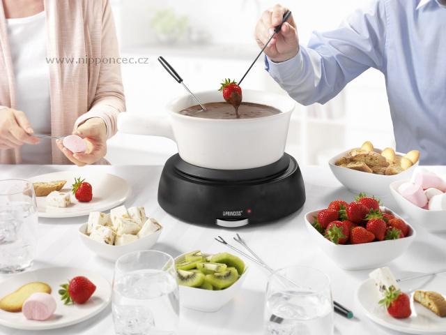 : porcelánová nádoba je vhodná zejména pro čokoládové a sýrové fondue, ingredience se nelepí