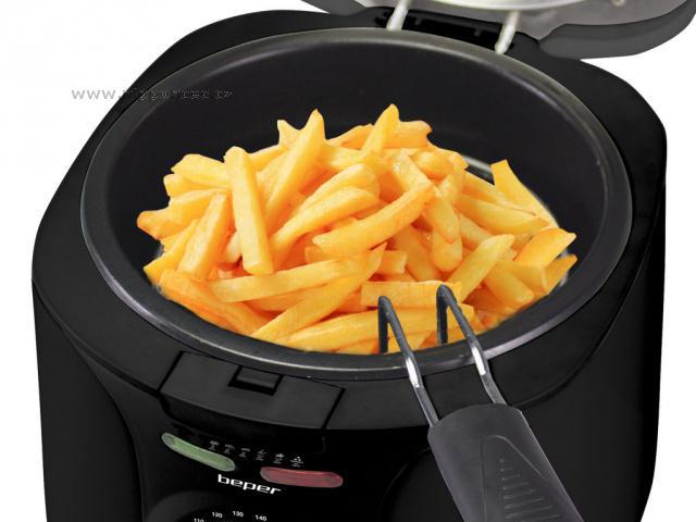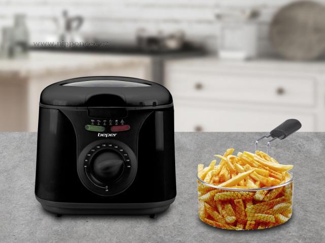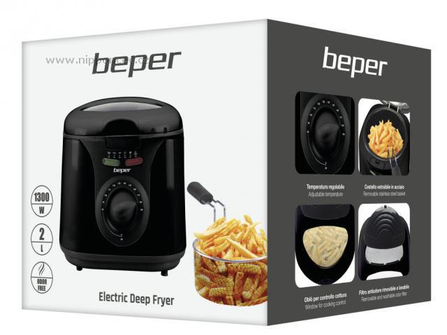 Elektrická fritéza BEPER P101FRI200 s nepřilnavou vnitřní nádobou o objemu 2 litry a ABS tělem. Fritéza disponuje nastavitelnou teplotou až do 190 ° C. Víko fritézy má průhledné okénko pro snadné sledování procesu vaření. Fritovací koš z nerezové oceli disponuje tepelně odolnou rukojetí. Protiskluzová základna zajistí stabilitu.