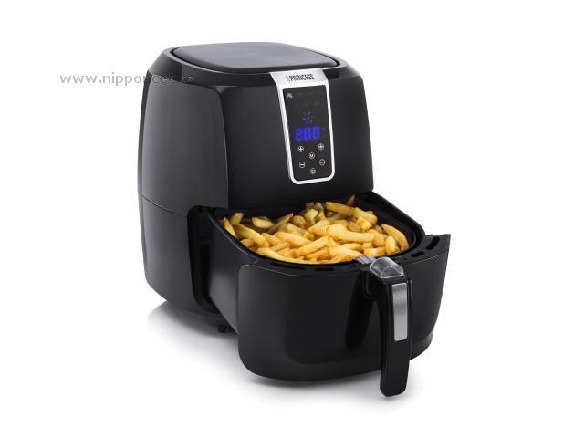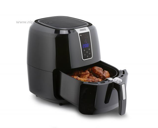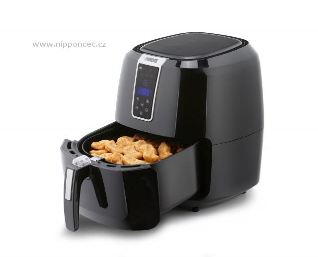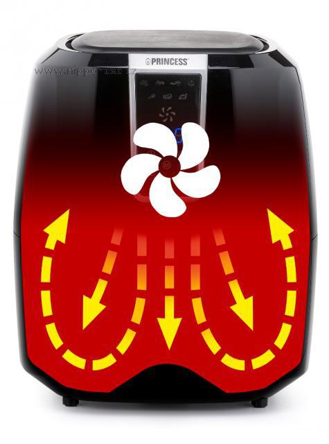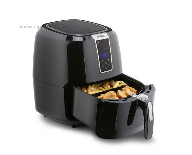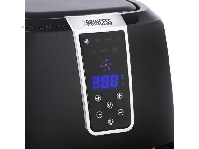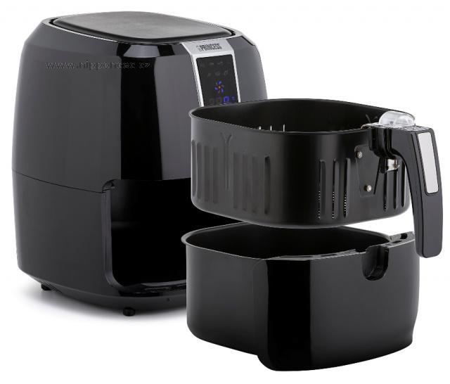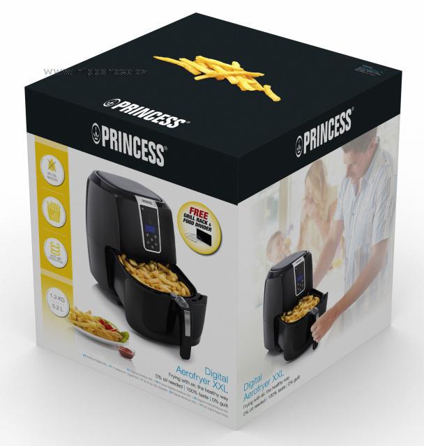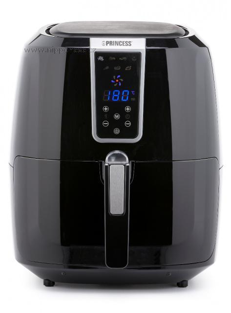 Fritéza na smažení bez tuku Princess AeroFryer XXL s kapacitou 5,2 litru - až 1,3 kg hranolek najednou! Fritéza smaží pomocí proudění horkého vzduchu - konvekce. Nastavitelná teplota, pojistka proti přehřátí, 1800W. Fritéza je vybavena digitálním dotykovým ovládacím panelem, LCD displejem. Má 7 předprogramovatelných nastavení pro perfektní výsledek přípravy potravin, a nastavitelný časovač - 40 minut.
