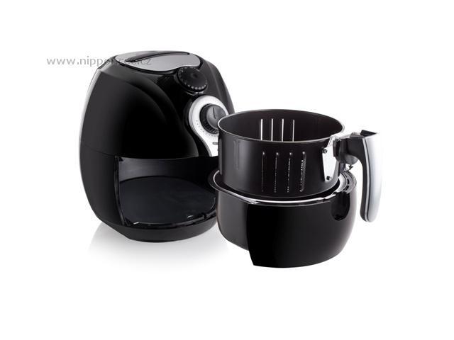 Horkovzdušná fritéza XXL o obsahu fritovacího košíku 5.2 l vhodná pro početnou rodinu či společnost, která umožňuje fritování takřka bez oleje pro zdravější příprava jídla. Teplota/termostat nastavitelný na 80 - 200 st. Celsia, nastavitelný časovač: 30 min, analogový ovládací panel/knoflík, vyjímatelný fritovací košík, nepřilnavý povrch, žáruvzdorné provedení, protiskluzové provedení, délka kabelu: 1 m. Příkon: 1800 W