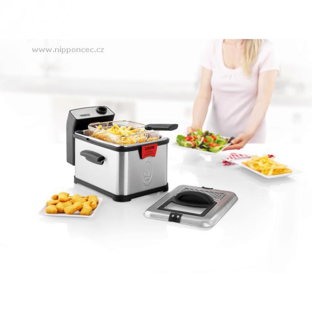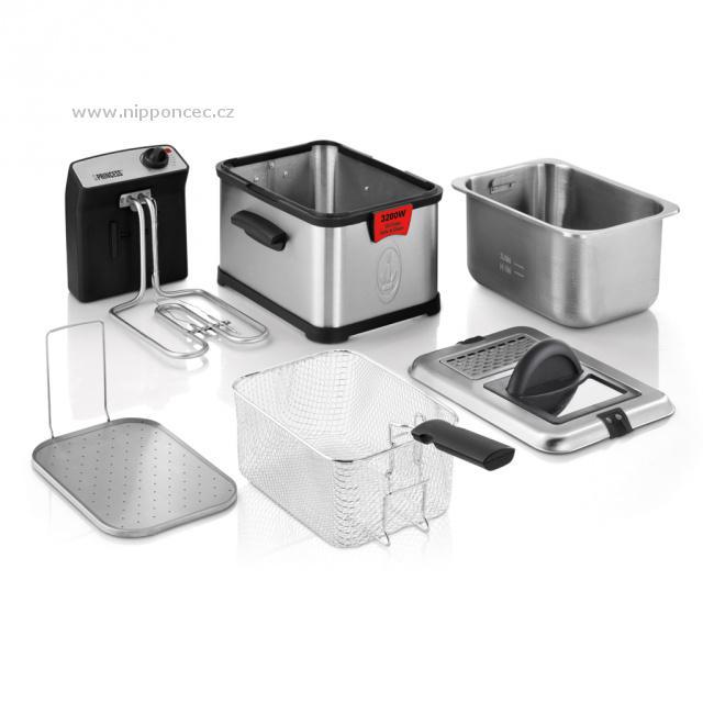 Fritéza Princess Superior Fryer s vysokým výkonem 32000W a obsahem 3l. Poloprofesionální fritéza s chladicí zónou, která zabraňuje vzplanutí zbytků pokrmu, snižuje zápach a vylepšuje chuť fritovaných potravin. Fritéza je vybavena přesně regulovatelným termostatem do 190 stupňů Celsia s pojistkou proti přehřátí a tři světelné kontrolky pro komfortní obsluhu. K tomu je navíc ve výbavě permanentní filtr - který zabraňuje rozstřikování oleje, stejně tak zpomaluje jeho znečistění.