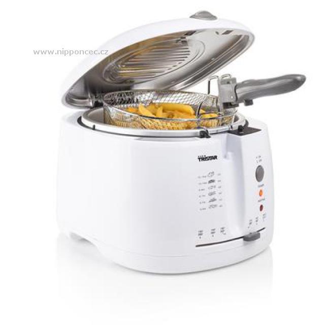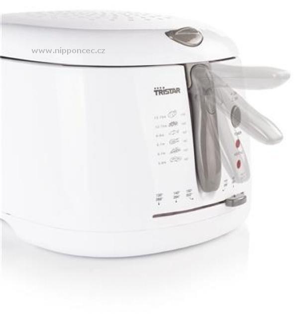 Máte rádi hranolky a nechcete na ně dlouho čekat? Pomocí fritézy Tristar FR 6904 o příkonu 1600W a objemu o 2,5l si pokrm připravíte velmi snadno a rychle. Je vybavena termostatem s nastavitelnou teplotu do 190°C, jednoduchým a přehledným analogovým ovládáním, spínačem on/off a tepelně odolným pouzdrem. Připravenost fritézy je možné kontrolovat pomocí 2 světelných indikátorů. Víko je osazeno vyjímatelným filtrem proti zápachu. A díky zasouvatelné rukojeti je fritéza lehce skladovatelná.