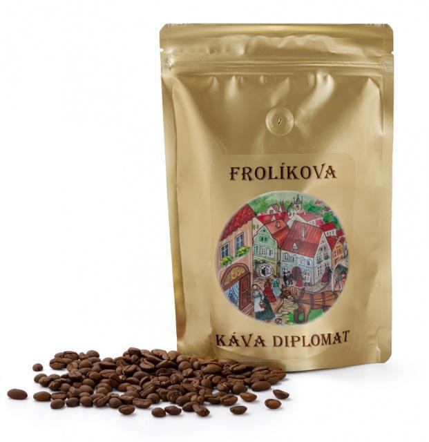Frolíkova káva Diplomat patří mezi špičky našich káv. Ocení jí především znalci dobré kávy. Kávy zde použity jsou ze tří kontinentů: Střední Amerika, Jižní Amerika a Asie. Jedná se 100% Arabiku. Káva je velice pečlivě pražena na střední úroveň pražení. Každé pražení je degustováno, aby byla zajištěna kvalita a především ojedinělá chuť kávy. Chuť je jemná, vyvážená, s nádechem hořké čokolády.