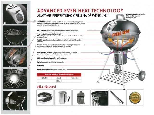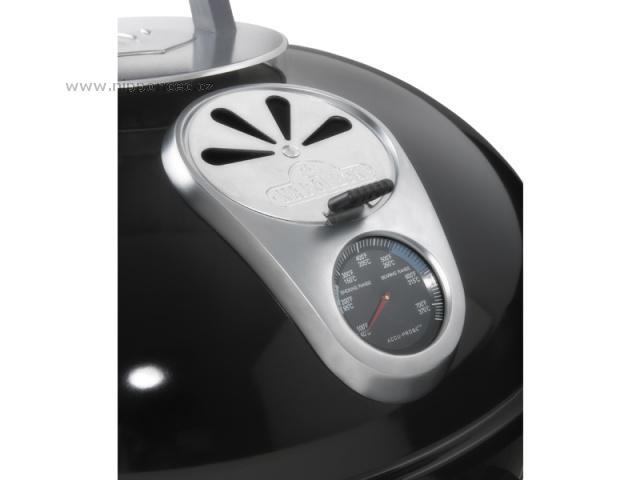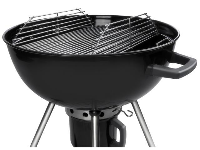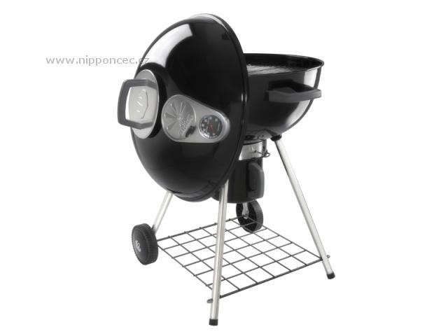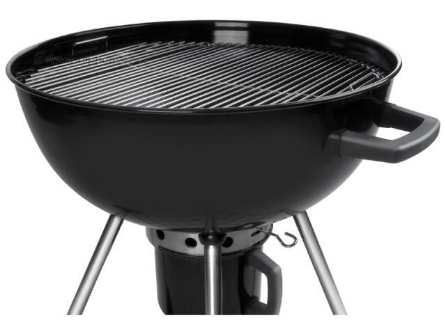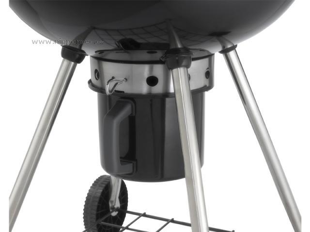 Gril na dřevěné uhlí s kotlem i víkem s vrstvou porcelánového smaltu v černé barvě. Odnímatelné víko s madlem, o které se nespálíte, se dá zavěsit na okraj grilu. Díky zabudovanému teploměru a nerezovému průduchu ve víku snadno udržíte požadovanou teplotu. Při grilování jistě využijete i praktickou odkládací plochu na spodní části grilu. Odolná kolečka zase usnadňují manipulaci s grilem po zahradě.