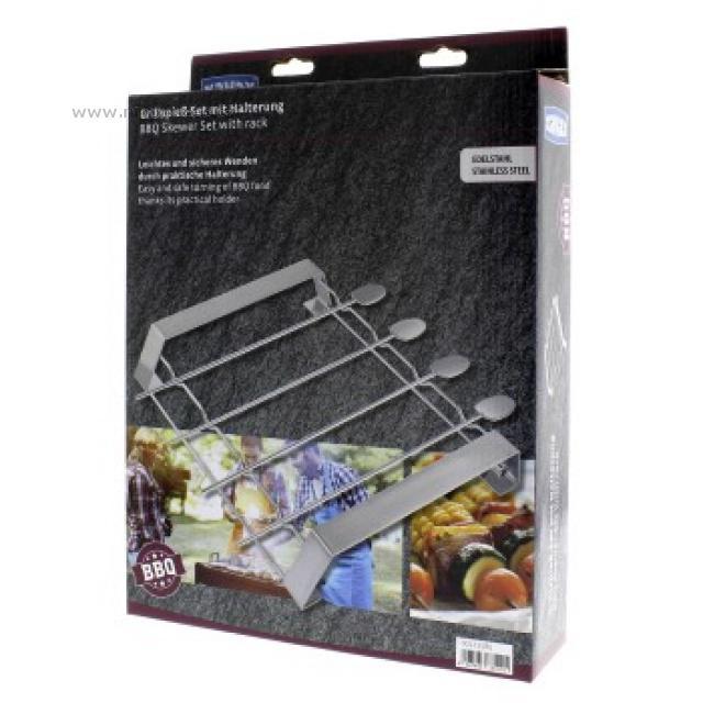Set 4 špízových jehel s praktickým podstavcem pro přípravu masových či zeleninových špízů. Grilovací jehly o délce 31,5 cm jsou vyrobeny z ušlechtilé oceli a lze je mýt v myčce na nádobí.