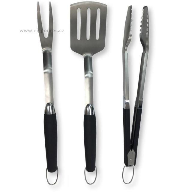 3 kusy grilovacího náčiní, oko na zavěšení.