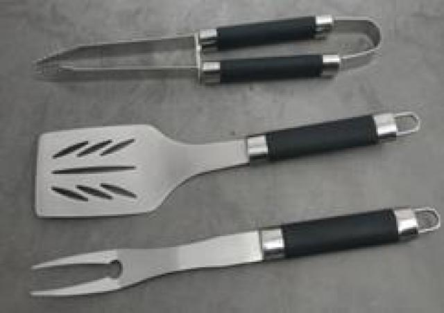Ulehčete si práci při grilováním s kvalitní nerezovou sadou určenou ke grilování. Sada obsahuje 3 položky, vidlici, kleště a obracečku. Vidlicí a kleštěmi snadno hotový pokrm naservírujete. A díky důmyslnému tvaru obracečky snadno maso obrátíte i když bude přichycené. Délka sady je 41 cm.