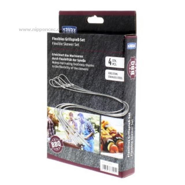Ohebné jehlice na marinování a grilování masových či zeleninových špízů, ohebnost umožňuje přizpůsobení tvaru konkrétnímu grilu a maximální využití místa na grilu, díky větší délce můžete na jeden špíz použít o mnoho víc ingrediencí než u běžné grilovací jehlice, ouško na konci je rukojeť pro snadnější otáčení při grilování a servírování, tepelná odolnost: do 600°C.