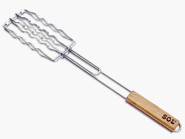 Usnadněte si práci při grilování vaší oblíbené pochoutky. Grilovací rošt je určen až pro 4 klobásy. Je skvělým pomocníkem, který usnadní obracení a manipulaci během grilování. Pro pevný úchop je rukojeť dřevěná. Navíc díky poutku je možné rošt zavěsit.