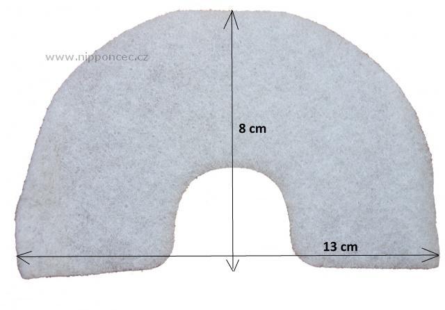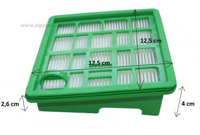 • orientační rozměry: HEPA: 12,5 x 12,5 x 2,6 - 4 cm. pěna: 10,5 x 11 cm, půlkruh: 13 x 8 cm.