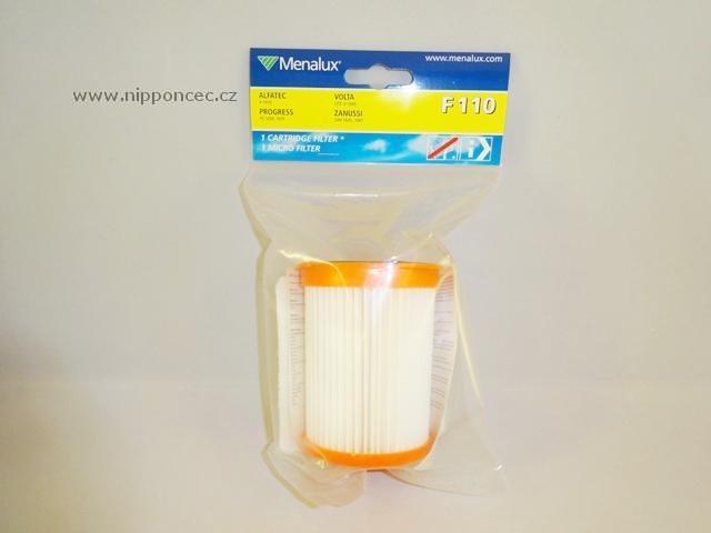 HEPA filtr F110 pro bezsáčkové vysavače Zanussi, Electrolux, Progress Volta, výrobce Electrolux pod svou značkou Menalux. S jedním mikrofiltrem v balení, válcový.