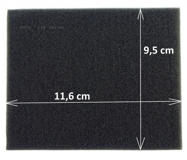 - 1ks pěnový filtr (vložený ze zadní strany HEPA filtru). Rozměry omyvatelného pěnového filtru 125 x 100 mm, tloušťka 10 mm. Omývatelný