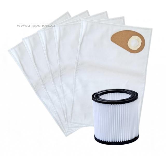 HEPA filtr do vysavačů Nilfisk Buddy II a sáčky 5ks textilní Sada textilních sáčků a omývatelného HEPA filtru je kompatibilní pro značení NILFISK 81943048, NILFISK 81943048 a je určena pro vysavače NILFISK Buddy II 12, NILFISK Buddy II 12 EU, NILFISK Buddy II 12L, NILFISK Buddy II 12 ZA, NILFISK Buddy II 18, NILFISK Buddy II 18 Inox, NILFISK Buddy II 18 L, NILFISK Buddy II 18 L Inox, NILFISK Buddy II 18 Premium Car, NILFISK Buddy II 18 UK..Válcový HEPA filtr je omývatelný a vyztužen tahokovem pro vyšší pevnost. Sáčky jsou vyrobeny z netkané textilie (SMS, mikrovlákno) s vysokou pevností, pružností a kvalitou filtrace.