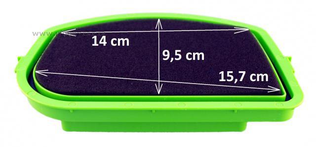 • 1ks pěnový omývatelný filtr: 160 x 115 x 15 mm.