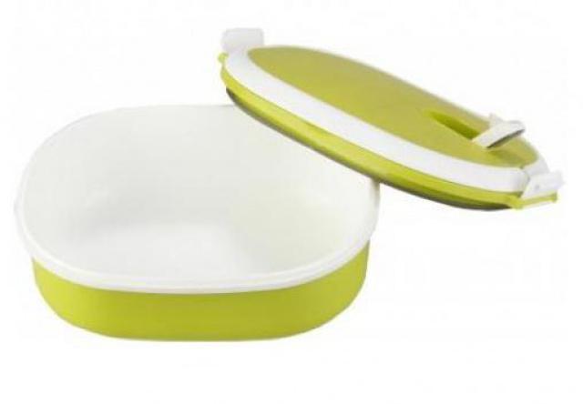 Velmi praktický lunchbox neboli přepravka na potraviny je hermeticky uzavíratelný pro přenášení i servírování potravin. Celkový objem činí 1,05 litru. Je vyroben z vysoce kvalitního plastu určeného pro styk s potravinami, bez BPA - bisfenolu A. Praktická zdvojená držadla pro snadný transport. Udržuje teplotu jídla přibližně 2-3 hodiny. Víko má speciální odvětrávání díky podtlakovému ventilu. Unikátní design zelené barvy. Vhodné pro ohřev v mikrovlnné troubě.