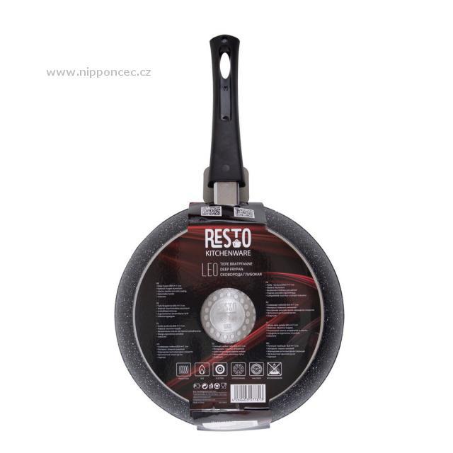 Hluboká pánev Resto 93041 s vysoce tepelně odolným vnějším povlakem je vyrobena z kovaného hliníku odolným proti korozi. Pánev má ergonomickou měkkou rukojeť, 4vrstvý nepřilnavý a oděruvzdorný povrch Pfluon. Tento povrch neobsahuje kadmium, olovo a kyselinu perftroktanovou (PFOA). Pánev je vhodná na všechny druhy sporáků, včetně indukčních. Indukční dno je velmi efektivní a rychle se zahřívá. Dno pánve je vyztužené antideformačním diskem, který při zahřátí zaručuje odolnost proti deformaci. Lze vložit do trouby při teplotě do 200 ℃ (bez rukojeti).
