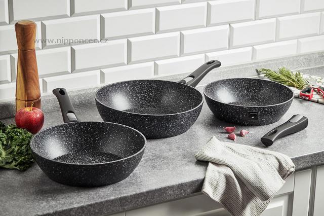 Hluboká pánev, 4vrstvý nepřilnavý povrch Pfluon, lze použít na indukci.