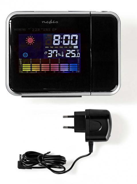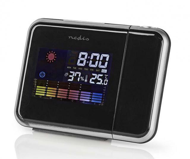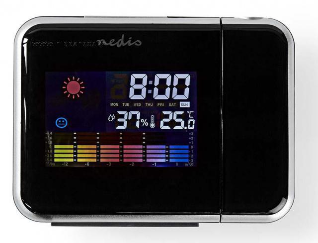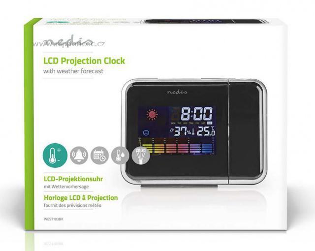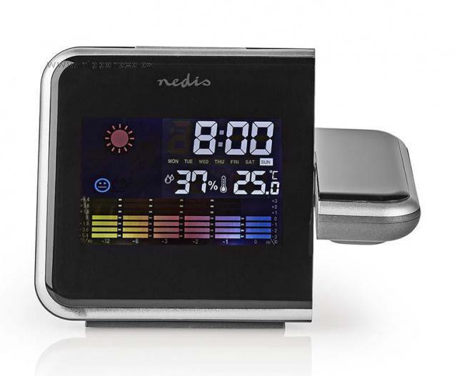 Meteostanice Nedis WEST103BK nabízí kromě klasického zobrazení času na displeji i možnost projekce času na zeď, proto budete mít vždy přehled o tom, kolik je hodin, ať už ve dne nebo v noci. Meteostanice dále zobrazuje i datum, den, vlhkost a podrobnou aktuální předpověď. Nechybí možnost nastavení budíku s funkcí opakovaného buzení. S touto meteostanicí budete mít vždy o všem přehled.