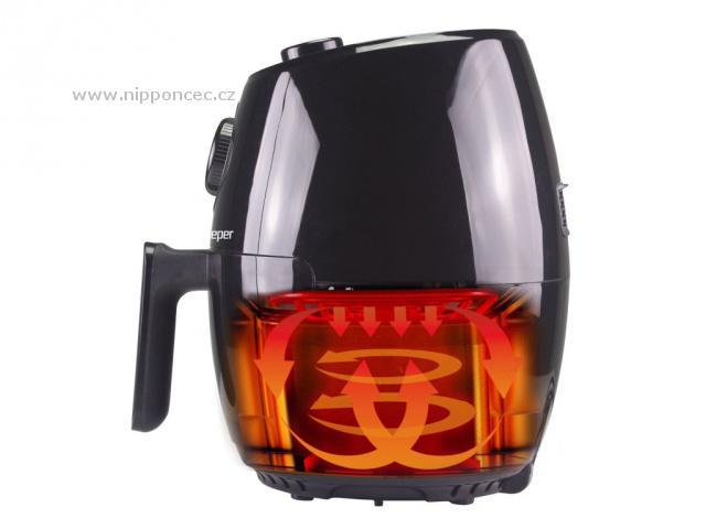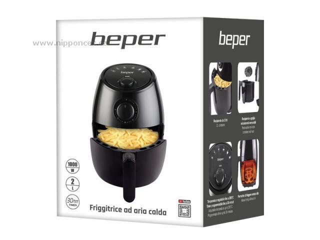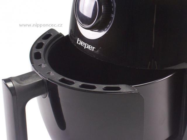 Horkovzdušná fritéza Beper smaží pomocí horkého vzduchu bez oleje či jiného tuku. Fritéza disponuje nastavitelným časovačem 0 - 30 minut a ochranou proti přehřátí. Teplotu lze nastavit na 80° C až 200° C. Nepřilnavá vnitřní nádoba o objemu 2 l je odnímatelná a snadno se čistí. Tato fritéza je ideální také pro pečení a grilování, vyznačuje se robustním ABS tělem. Příkon 1000 W.