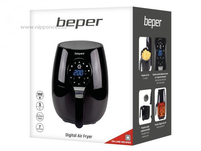 Horkovzdušná fritéza Beper P101FRI050 smaží pomocí horkého vzduchu bez oleje či jiného tuku. Fritéza disponuje nastavitelným časovačem 0 - 60 minut, ochranou proti přehřátí a automatickým vypnutím. Teplotu lze nastavit na 80° C až 200° C. Nepřilnavá vnitřní nádoba o objemu 5 l je odnímatelná a snadno se čistí. Tato fritéza je ideální také pro pečení a grilování, vyznačuje se robustním ABS tělem. Příkon 1450 W.