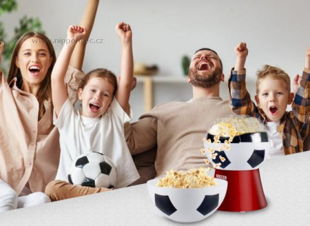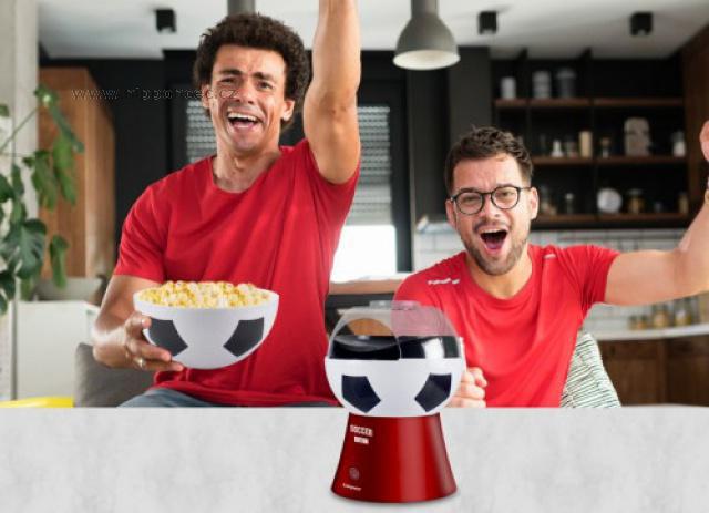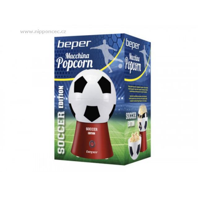 Stylový horkovzdušný popkornovač Beper P101CUD051 s příkonem 1200 W ocení nejen fanoušci fotbalu. Chutný a zdravý domácí popcorn si v něm připravíte do tří minut, navíc k jeho výrobě nepotřebuje žádný tuk. Popkornovač má výkonný a spolehlivý motor a díky nepřilnavému povrchu se snadno čistí. Jeho víko můžete využít jako misku.