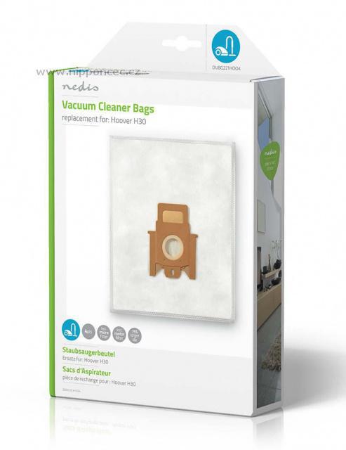 Nedis Sáčky pro vysavače HOOVER H30, H60, H73, H77, H79, H82, Telios Plus... a další 4ks Sáčky do vysavačů z netkané textilie jsou kompatibilní pro značení HOOVER H 30 Arianne, HOOVER H 30 Telios, HOOVER H 30S Telios Plus, HOOVER H 60 PurePower, HOOVER H 60 Telios Plus, HOOVER H60, HOOVER H72 Athos, HOOVER H73 Athos, HOOVER Sencory EVO, Senzory EVO SO30 PAR011 HOOVER Space Explorer, HOOVER Telios Plus, Telios Plus TE70 TE20084, HOOVER Telios Plus TE70 TE40011 HOOVER Telios Plus TE70 TE58011, HOOVER H82 Power Capsule, HOOVER T 2100 - 2599, T 2615, T 2621, T 2740, T 2760, Micropower: SC serie, Microspace: SCT serie, Sensory:TS serie, TELIOS T 4300 - 4599, T 5400 - 5799 a dalších vysavačů. - Balení obsahuje: 4 ks sáčků v balení Nedis DUBG221HOO4