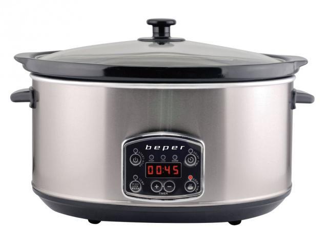 Elektrický hrnec pro pomalé vaření BEPER BC510 4,5 L s časovačem 30 minut až 16 hodin a se 3 režimy vaření - vysoký / nízký / teplý (HIGH / LOW / KEEP WARM). Pomalé vaření patří v současné době k novým trendům zdravého a chutného vaření. Jídla díky němu získají nové, výraznější chutě, a proto je možné při jejich přípravě používat méně dochucovadel. V pomalém hrnci se vaří, peče i dusí. Vaření je jednoduché a úsporné.