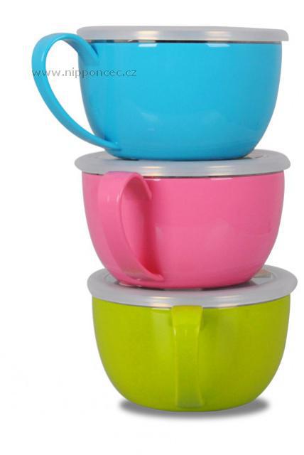 Veselá přepravka na jídlo v podobě hrnku s velkým uchem o objemu 1,1 litru je vhodná na teplé i studené potraviny, které můžete konzumovat přímo z nádoby. Vnější část je z vysoce kvalitního plastu, určeného pro styk s potravinami. Vnitřní část je vyrobena z nerezové oceli. Transparentní víčko je opatřeno ventilem pro vyrovnání tlaku a 100% těsněním pro snadný transport.