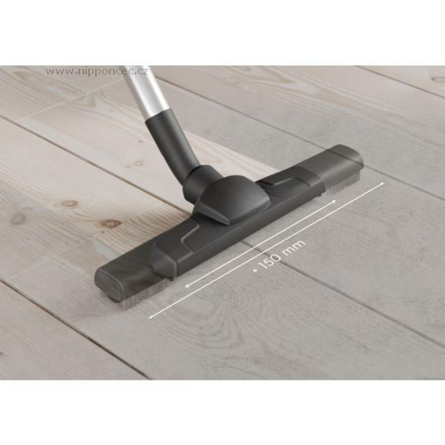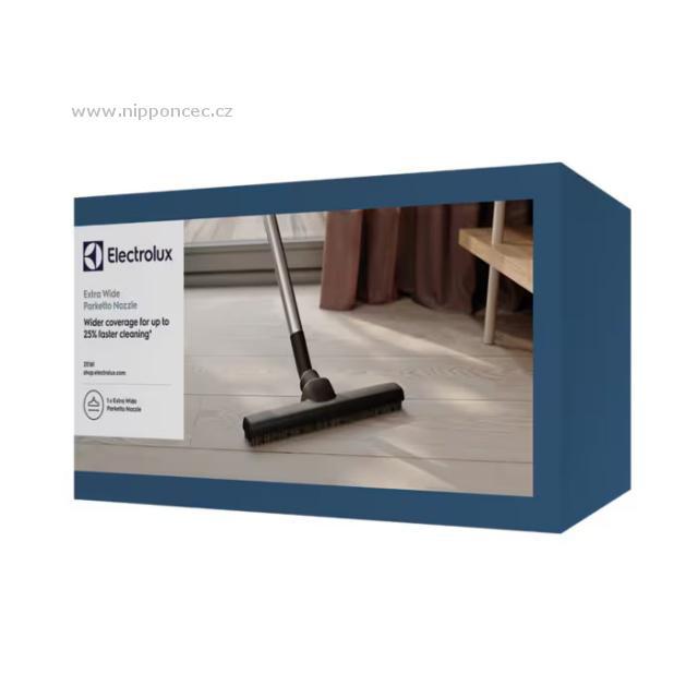 pomáhá zkrátit dobu vysávání a zároveň poskytuje vynikající výsledky při vysávání. Extra měkké štětiny na přední a zadní straně hubice v kombinaci s měkkými kolečky zajišťují co nejšetrnější čištění tvrdých podlahových povrchů jako jsou např. dřevěné podlahy. Extra široká hubice ELECTROLUX Parketto ZE161.