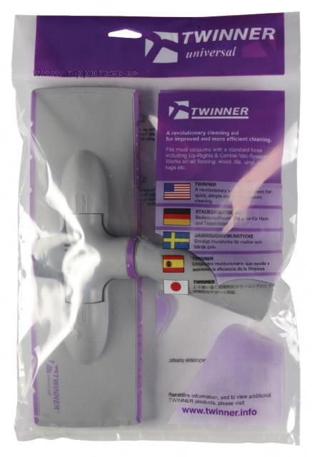 Výjimečně nízká podlahová hubice Twinner - vhodná pro vysávání tvrdých podlah i koberců - jedním tahem, bez nutnosti hubici přepínat. Vzhledem ke své nízké výšce - pouze 42 mm - je hubice Twinner výborná na vysávání pod nábytkem. Twinner si stejně tak poradí si i s pavučinou na stropě - díky možnosti hlavu hubic otočit kolmo nahoru. Velmi lehká hubice - 280 g - s vynikajícími vysledky úklidu kolem soklů a zdířek bez ohýbaní zad.