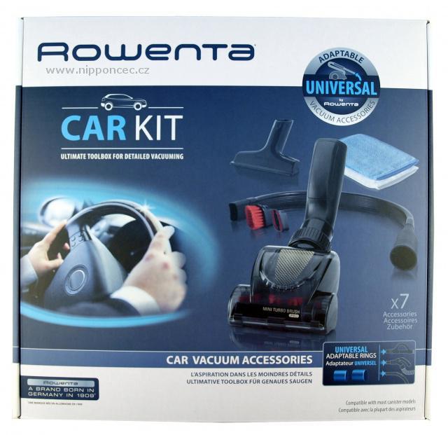 Univerzální sedmi dílná sada hubic ROWENTA ZR001110 CarKit pro vysávání automobilu je účinný pomocník nejen při úklidu auta, ale i úzkých prostor, polstrovaného nábytku a zvířecích chlupů. V sadě obdržíte štěrbinovou flexi hubici pro úklid těžko dostupných míst, 2 malé minihubice (s červeným syntetickým chupem a červeným velurem) - které se nasadí na pružnou hubici dle vaší preference, 1x malou hubici na čalounění a polstry , 2 dvě mikrofázové rukavice na sklo i plastové plochy , turbokartáč na chlupy a menší koberce + dva adaptéry pro připojení k trubkám 32 a 35 mm. Sadu ROWENTA ZR001110 je možné využít se všemi válcovými vysavači ROWENTA - s klasickým připojením trubek i s LOCK Systémem ROWENTA. Sada je vhodná např. pro modelové řady ROWENTA City Space, City Space Cyclonic, ROWENTA Compact Power Cyclonic, ROWENTA Compact Power, ROWENTA Compacteo, ROWENTA Green Force Max, ROWENTA Mini Space, ROWENTA Silence Force, ROWENTA Silence Force Compact 4A, ROWENTA Silence Force Extreme, ROWENTA Swift Power Cyclonic, ROWENTA X-Trem Power, X-Trem Power Eco, ROWENTA X-Trem Power Cyclonic....