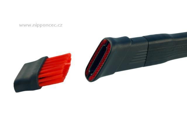 Univerzální sada hubice na vysávání automobilu a důkladný úklid "Rowenta Car Kit " pro vysavače Rowenta 2 nástavce na tuto pružnou hubici - kartáčový červený nástavec na prach, zásuvky, sokly, přihrádky a malý nástavec na čalounění pro dočistění autosedaček nebo skladů v polstrovaném nábytku 1x hubice na čalounění s lapačem nečistot na spodní části 1x bílá mikrofázová utěrka - na sklo - s jednou stranou zcela hladkou, druhou s mírnou hrubostí - navlékací rukavice 1x modrá mikroutěrka - na plastové povrchy - s jednou stranou zcela hladkou, druhou s mírnou hrubostí - navlékací rukavice 1x turbokartáč je vhodný zejména na čalounění, polstry, malé koberečky, autosedačky (orientační rozměry turbokartáče 120 x 55 mm) 1x adaptér pro připojení k trubkám 32 mm 1x adaptér pro připojení k trubkám 35 mm Průměr připojení: 32 mm / 35 mm / Rowenta Lock Systém