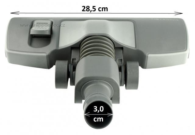 Díky gumovým kolečkům se s ní snadno přejíždí po vysávaném povrchu, nožní přepínač je praktický - není nutné se při přepnutí funkce ohýbat. Tento nástavec poslouží výborně jak účelu vysávání tvrdých podlah - mramor, lino, dlažba, parkety, plovoucí podlahy, mramor - tak koberců. Spodní část je osazena plyšovým lapačem nečistot - chlupů, vlasů, nití. Je v šedočerné barvě.