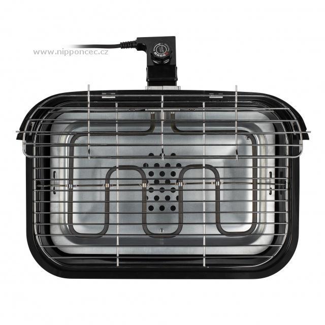 Je vždy připraven k práci a může být použit jako stolní gril. Disponuje protiskluzovými nožičkami, světelnou indikací provozu a zadním štítem, který grilované ingredience chrání před větrem. Méně nepříjemných pachů a kouře. Součástí balení je grilovací mřížka. Délka napájecího kabelu je 1m, rozměry grilovací plochy jsou 44 x 28,5 cm. Je vhodný pro kempování.