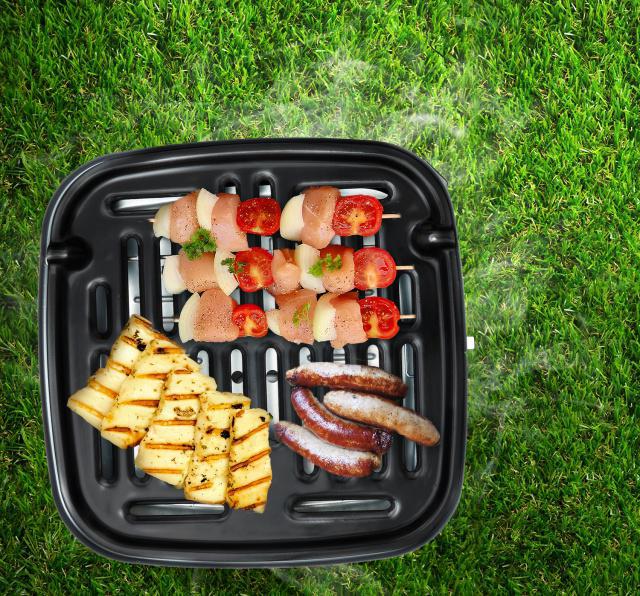 2 v 1 elektrický gril/gril na dřevěné uhlí, nastavitelný termostat.