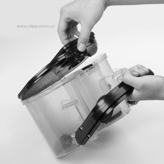 Nádoba na prach je z transparentního plastu o objemu 4,5 l a tak máte přehled o tom, kdy ji vysypat.