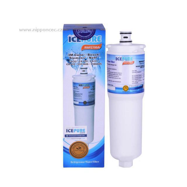 Filtrační patrona na vodu IcePure RWF2700A pro vybrané lednice značky Ariston, Beko, Bosch, Gaggenau, Kuppersbusch, Siemens Neff. Vylepšuje chuť vody a zároveň jí zbavuje toxinů jako je chlorid, těžké kovy a jiné částice, které negativně ovlivňují chuť vody. Vodní filtry jsou často používány v lednicích s připojením na pitnou vodu a výrobníkem ledu. K zajištění plné funkcionality je doporučeno měnit vodní filtr každých 6 měsíců. Vodní filtr IcePure je certifikován NSF. Náhrada za modely: 55866-05, 55866-06; CS-51, CS-450, CS-452, 70020002518, EVOLFLTR10; 640565, CS52, CS51; Dual Action Filter; 5586605.