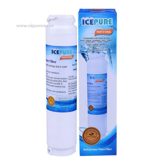 Filtrační patrona na vodu IcePure RWF3100A pro vybrané lednice značky Baumatic, Bosch, Miele, Siemens, Gaggenau, Neff, Balay, Haier vylepšuje chuť vody a zároveň jí zbavuje toxinů jako je chlorid, těžké kovy a jiné částice, které negativně ovlivňují chuť vody. Vodní filtry jsou často používány v lednicích s připojením na pitnou vodu a výrobníkem ledu. K zajištění plné funkcionality je doporučeno měnit vodní filtr každých 6 měsíců. Vodní filtr IcePure je certifikován NSF.