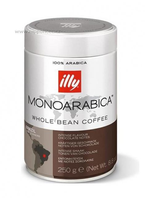 Illy Monoarabica Brazil zrnková káva je 100% Arabica. Je vyšlechtěna tak, aby byly zajištěny její jedinečné chuťové vlastnosti. Jejím poznávacím znakem je výrazně nasládlá chuť. Je charakteristická plnými tóny čokolády s lehkým náznakem karamelu a dokonce je možné v ní ucítit i chuť čerstvě upečeného chleba.