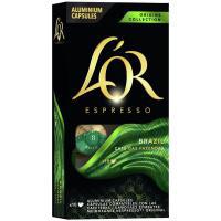 Káva v kapslích L'OR Espresso Brazil se vyznačuje oříškovou, vyváženou a jemnou chutí. Intenzita kávy je 8 z 14, tedy jedná se o středně silnou kávu, která vždy pohladí vaše smysly. Káva je vhodná pro Nespresso přístroje a jde o 100% brazilskou směs, která Vás překvapí svou komplexností. Madlové aroma je doprovázeno lehkými tóny karamelu a meruněk, završené bohatou pěnou. Jemná a vyvážená káva, pro potěšení bez námahy, kterou si budete chtít vychutnávat i nadále.