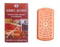 Sorbex - Kuchyň - účinně odstraňuje vlhkost. Příjemně provoní Vaší kuchyň lehkou skořicovo - hřebíčkovou vůní. Sorbex obsahuje směs netoxických látek přírodního původu, Vůně skořice a hřebíčku, Použití: vyjměte krabičku z obalu a vložte ji na Vámi určené místo v kuchyni. Doba účinnosti je minimálně 3 měsíce od data vložení.Sorbex - Kuchyň (pevný nosič) je vyroben ze 100% přírodních látek. Složení: přírodní zeolit, parfém.