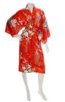 Elegantní dámské kimono je vyroben ze 100% hedvábí a díky tomuto hebkému materiálu je neuvěřitelně příjemné na dotek. Kimono je vyrobeno v japonském městě Kjóto a je dodáváno s odpovídajícím pásem. Kimono je dlouhé 107 cm pro EU velikosti 36 - 42 . V červené barvě zdobeno bílými květy.