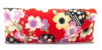 Dámské pouzdro na brýle je široké 16 cm. Pouzdro je potažené kimono látkou pestrého vzoru, s magnetickým uzávěrem. Vnitřní část je černá - sametově měkká, a vytvarovaná tak, aby bylo zabráněno nechtěnému posunutí brýlí v pouzdře. Praktický a elegantní doplněk, který svou krásou a příjemným dotykem potěší každou ženu.
