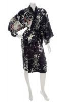 Elegantní dámské kimono je vyroben ze 100% hedvábí a díky tomuto hebkému materiálu je neuvěřitelně příjemné na dotek. Kimono je vyrobeno v japonském městě Kjóto a je dodáváno s odpovídajícím pásem. Kimono je dlouhé 107 cm pro EU velikosti 36 - 42 . V černé barvě zdobeno květy.