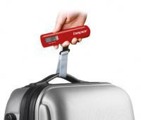Digitální váha na zavazadla BEPER UT200 R, červená s LCD displejem. Provoz baterie s indikátorem vybití baterie. Maximální zatížení 50 kg / 110 lb. Váha lze také využít na vážení jiných předmětů (např. balíků).