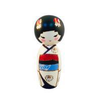 Japonská panenka Kokeshi Kikumusume - Maminčina holčička s jemným a laskavým výrazem v obličeji má vlásky zdobené sponkami od maminky. Bílé kimono je dekorováno květy chryzantém, které jsou oblíbené japonské květiny. Originální panenka Kokeshi pochází z dílny mistra Izumi. Vynikající dárek, jako výraz lásky či přátelství pro vaše blízké.