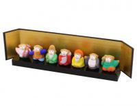 Figurky sedmi japonských bohů štěstí v podobě roztomilých opiček, které pocházejí z dílny Hakurei v Kjótu. Keramické figurky jsou umístěny na podstavci s dekorativním paravanem. Shichi-fuku-jin - sedm bohů štěstí - Ebisu: Je to bůh moře, rybářů a prosperity, Daikokuten: Je to bůh zemědělství, bohatství a obchodu. Bishamonten: Je to bůh válečníků. Benzaiten: Je bohem vědění, umění a krásy, zejména hudby. Fukurokujyu: Bůh moudrosti, štěstí a dlouhověkosti. Jurōjin: Je to bůh dlouhověkosti. Hotei: Je to bůh hojnosti a dobrého zdraví.