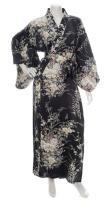 Elegantní dámské kimono je vyroben ze 100% hedvábí a díky tomuto hebkému materiálu je neuvěřitelně příjemné na dotek. Kimono je vyrobeno v japonském městě Kjóto a je dodáváno s odpovídajícím pásem. Kimono je dlouhé 107 cm pro EU velikosti 40 - 48 . V černé barvě zdobeno bílými květy.