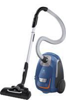 Sáčkový vysavač Easy Go, příkon 650 W. Hubice DustPro™ pro efektivní hloubkové čištění, mechanický Indikátor plného prachového sáčku, regulace výkonu, měkčená kolečka, teleskopické trubky, omyvatelný hygienický filtr 12, délka přívodního kabelu 5m, akční rádius 7,5 m. Integrované příslušenství (štěrbinová hubice, hubice na čalounění + kartáček). Barva modrá